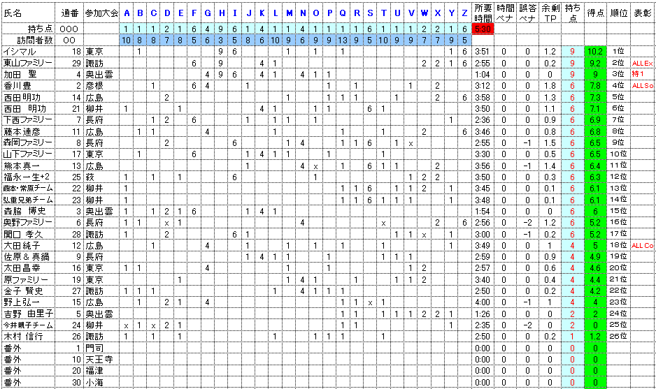特1・・・最少訪問者TPを推理した3名の中で余剰TPナシのという強運の奥出雲会場の加田聖さん。